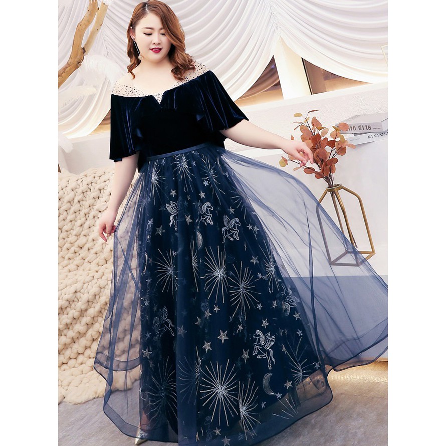 Jual Gaun Pesta 1811058 Navy Hitam Big Size Party Dress Gown Kota Medan Christian Tung Tokopedia