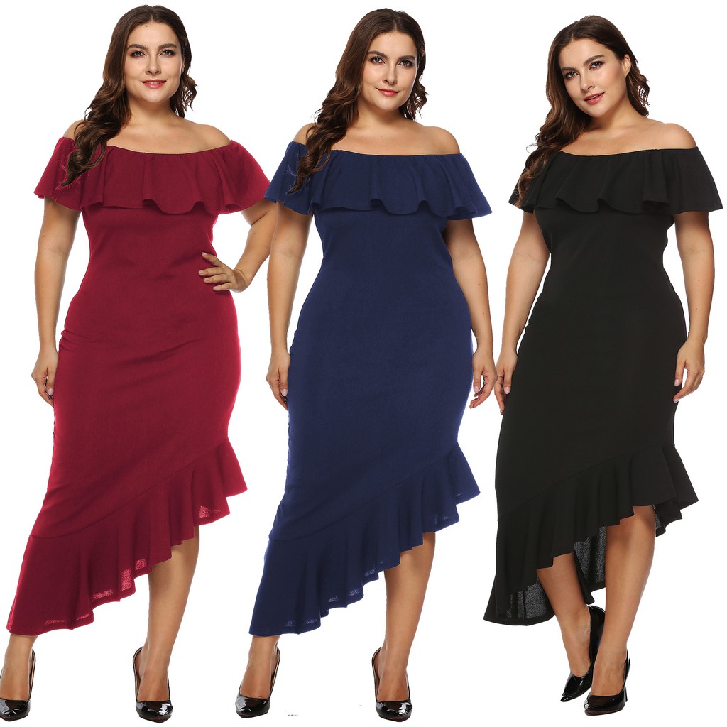 Women Plus Size Party Dress Off Shoulder Ruffles Party Bodycon Big Size Dress Xl 5xl 846 Shopee Singapore